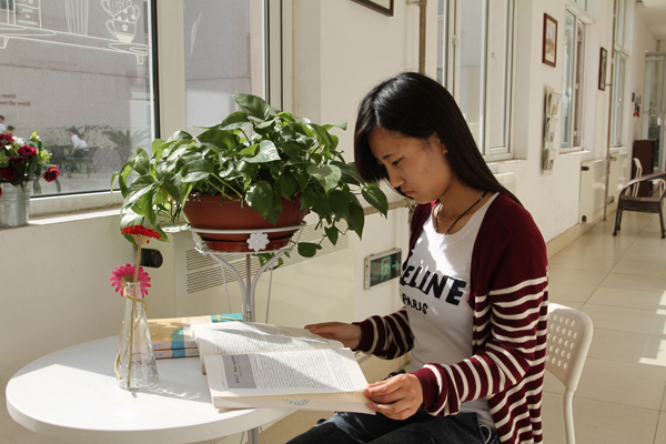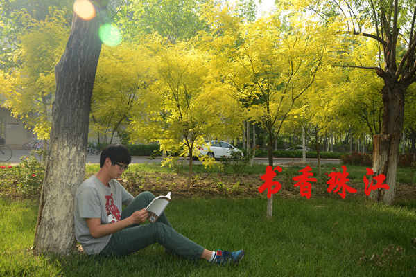 树荫下,连廊旁,图书馆,自习室……或站,或坐,或写,或沉思……阳光洒在身上,空气中弥漫着芳香。因书,生命变得精彩;因书,人生便与众不同。