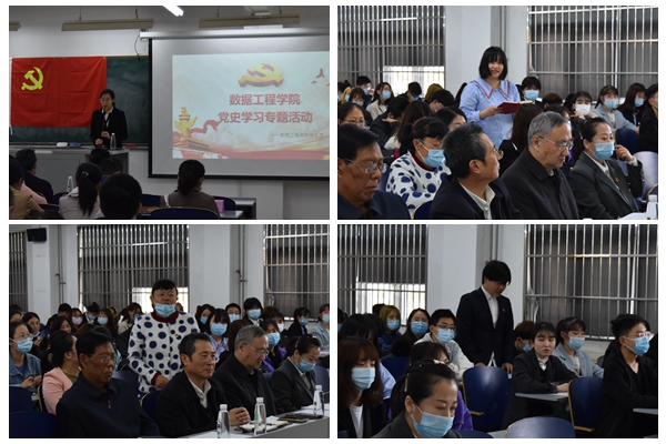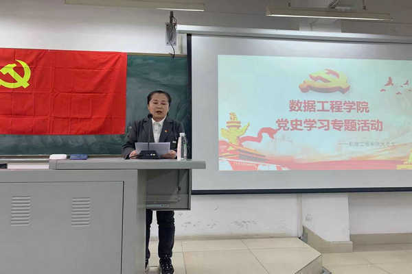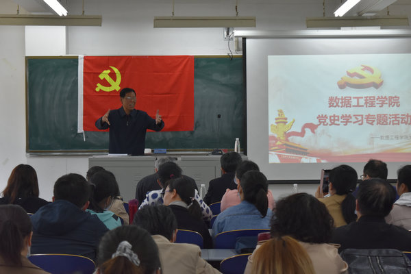 数据工程学院副院长苗文利老师,向大家汇报了自己学习党史的感受,他以一个老党员的身份向年轻教师讲述了自己从求学到工作的经历,讲述了自己响应党的号召支援乡村建设、从事53年教书育人的初心和奋斗经历,他以“我们、你们、他们”为交流话题线索,向年轻教师传递了“坚定信心跟党走,育才报国勇担当”的精神力量和师德风范。他还特别强调,青年党员要加强党史学习,在党史学习中真正做到学进去、见行动,要为党的教育事业奋斗终身,用自己的行动为建党一百周年献礼。他还向师生们分享了人生感悟,给师生上了一堂生动的党课。