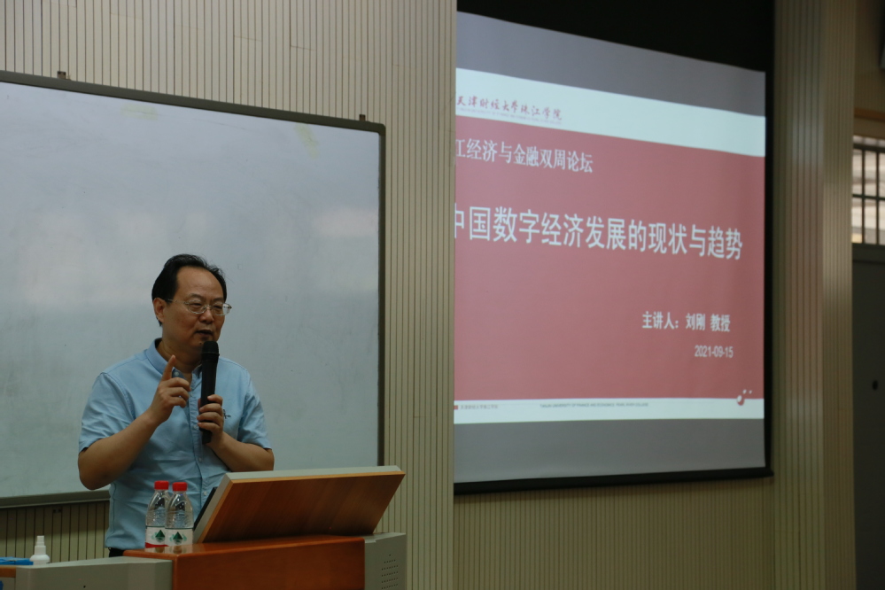9月15日下午,在日新楼录播室,南开大学经济研究所所长,南开大学滨海开发研究院院长,中国新一代人工智能发展战略研究院首席经济学家刘刚教授为经济学院师生作了题为“中国数字经济发展的现状和趋势”的专题讲座。讲座由经济学院学术委员会主任李志辉教授主持,经济学院100余名师生参加。