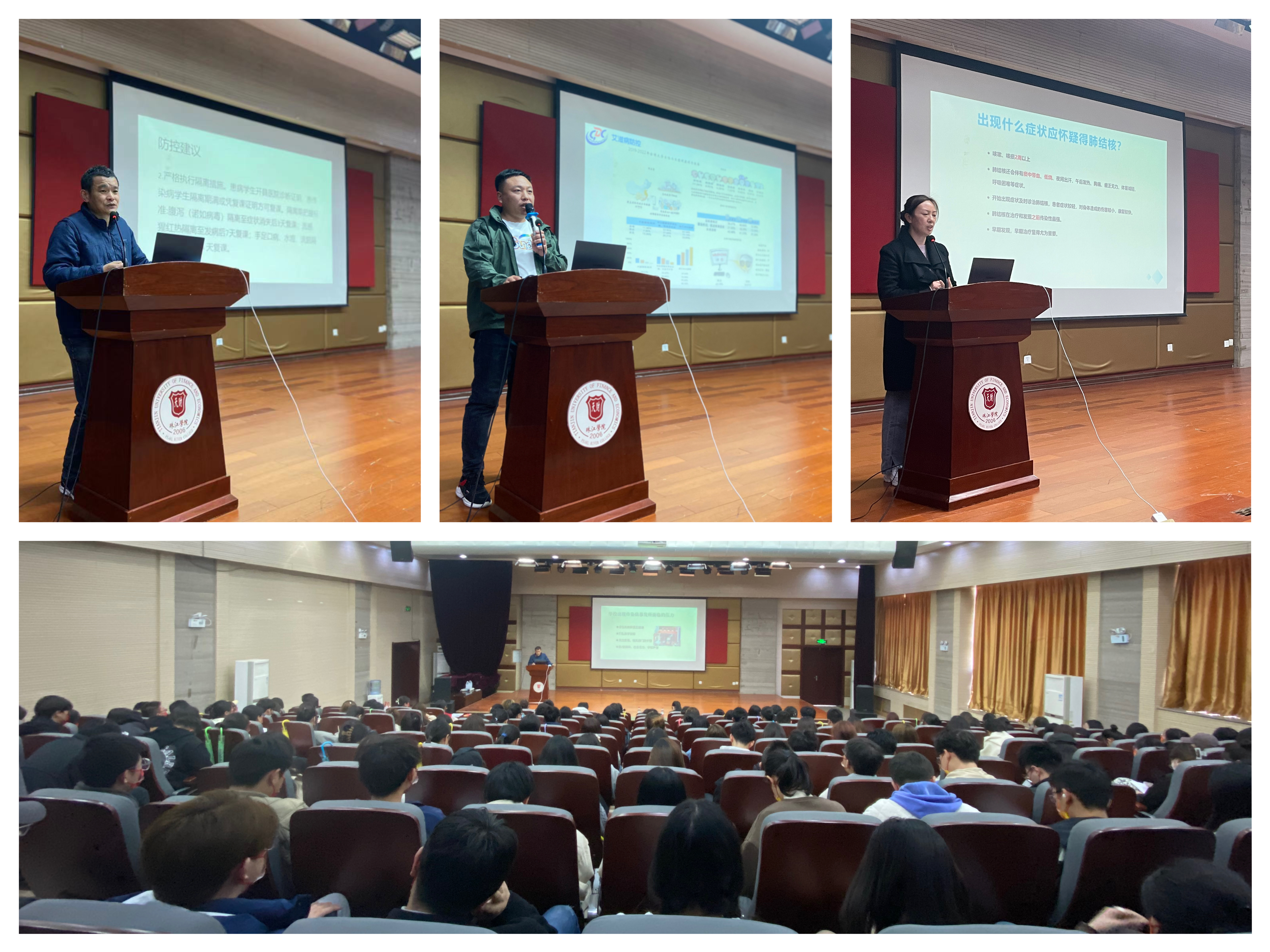 讲座上,郝肖阳就校园传染病防控给与指导,倡导同学们要坚持做好通风、消毒和个人的健康监护。刘春长就艾滋病的传播途径、预防的重要性进行强调。刘利娟围绕结核杆菌的发现、肺结核的传播方式、肺核病的易感人群、肺结核的症状等普及相关知识。讲座内容干货满满,现场同学热情高涨,踊跃回答问题。