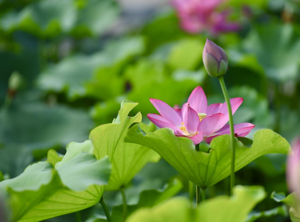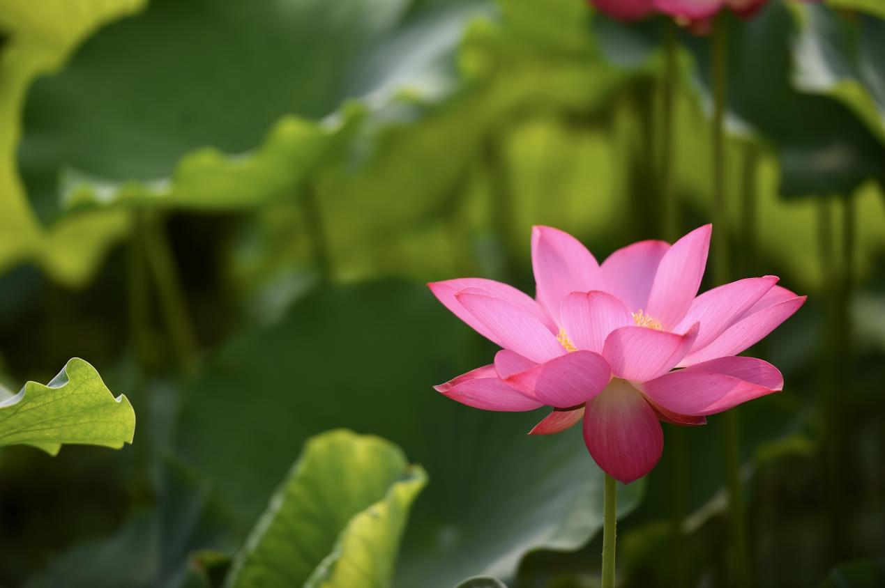 碧水池莲映荷塘,小伞底下锦鲤藏。