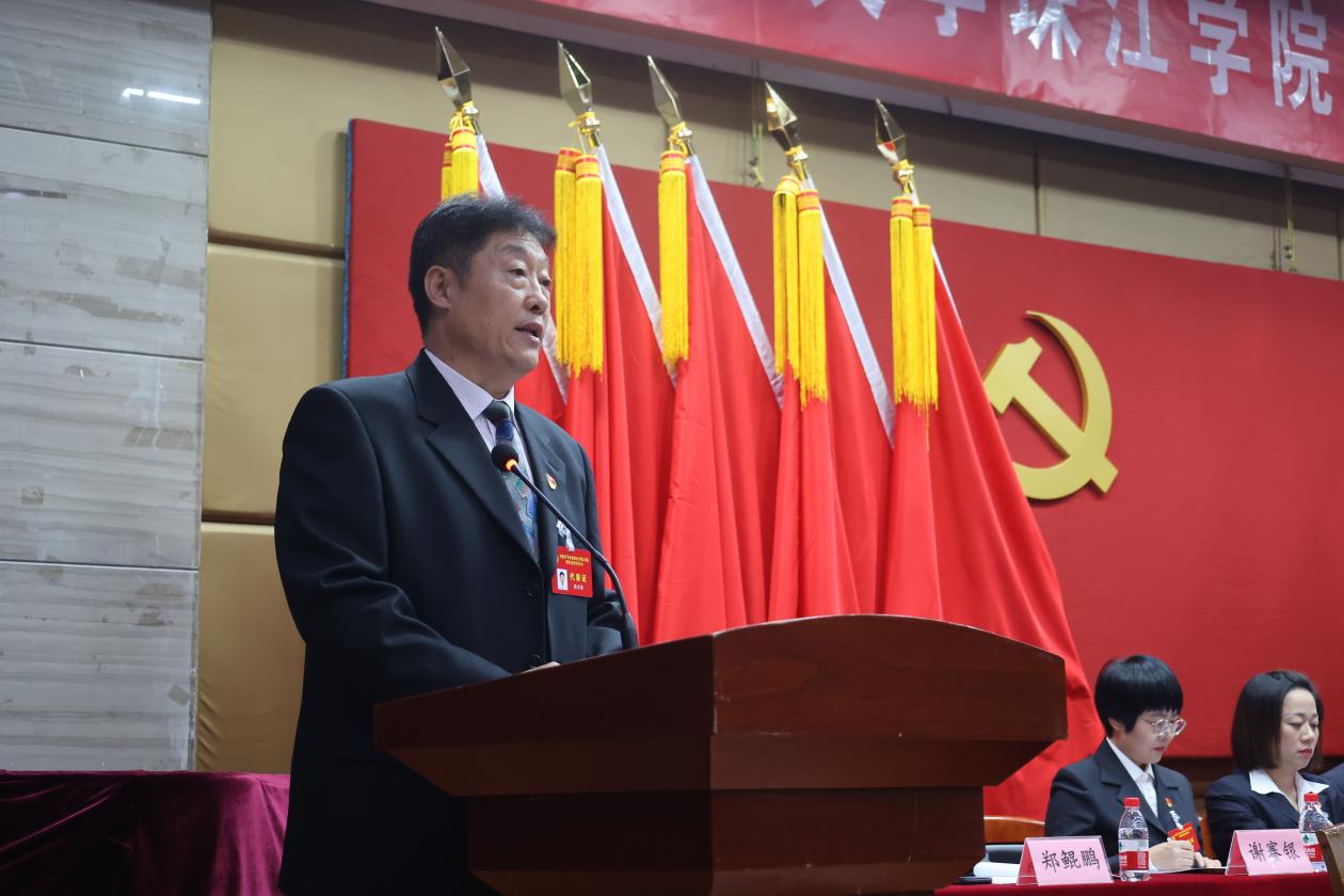 党委书记靳术海同志代表中国共产党珠江学院第三届委员会作工作报告。报告全面回顾了学院第三次党代会以来的主要工作,总结了学院事业发展取得的成绩、存在的问题,分析了学院发展面临的形势和机遇,明确了学院未来五年的发展目标和主要任务。他指出,第三次党代会以来,学院党委坚持以习近平新时代中国特色社会主义思想为指导,在yabo鸭脖官网党委的正确领导下,牢牢把握社会主义办学方向,牢记为党育人、为国育才的使命,围绕立德树人根本任务,团结带领全院师生员工在党的建设、思想政治工作、监督执纪、安全稳定、教学科研等方面取得了一系列成绩。他强调,今后五年,在党的二十大精神指引下,珠江学院进入高质量发展新阶段,面对新形势、新任务、新要求,为实现建设国内一流财经类应用型大学的目标,要立足“七个有力”,夯实基层党组织建设,驰而不息推进全面从严治党,推动落实党风廉政建设,加强师资队伍建设,深化思想政治工作,提高师生获得感和幸福感。他号召全院上下要更加紧密地团结在以习近平同志为核心的党中央周围,踔厉奋发担使命,勇毅前行谱新篇,推动学院在高质量发展新征程上行稳致远,为党的教育事业做出更大贡献。