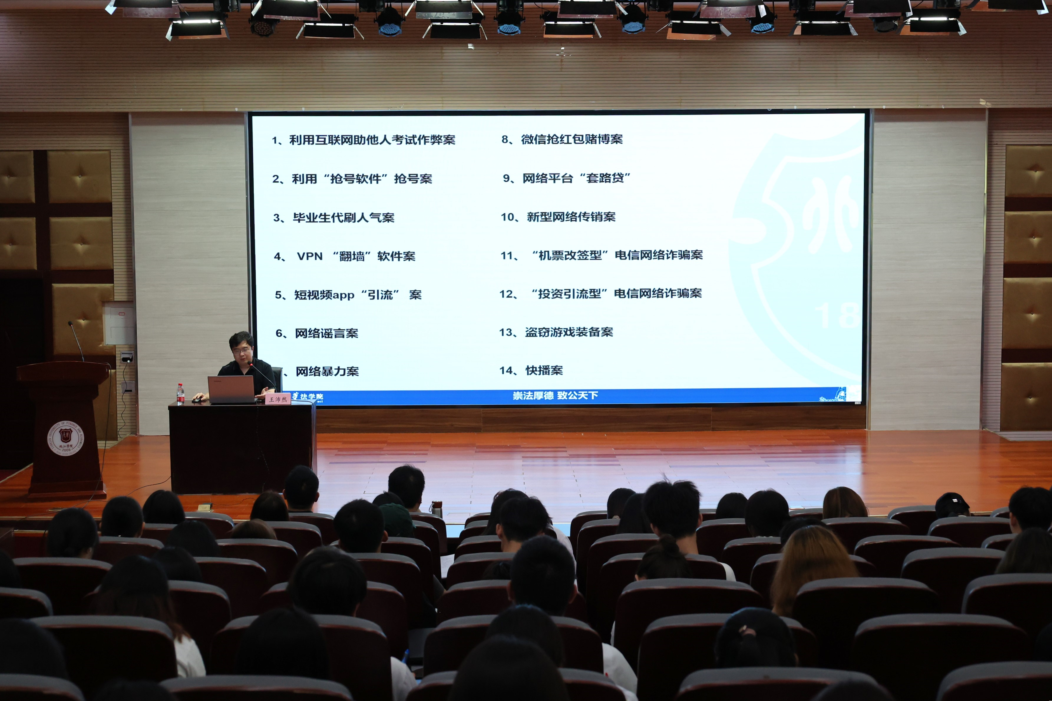 本次讲座主要围绕网络安全的定义、生活中的网络安全、网络安全刑法保护的必要性、网络安全刑法保护的合理限度、网络犯罪的立法扩张及网络犯罪的司法限缩等方面展开。在讲座中,王博士结合校园实际,引用了诸多网络安全典型案例,如“利用互联网考试作弊”“‘投资引流型’电信网络诈骗案”“盗窃游戏装备案”等,深入讲解了网络安全刑法保护相关措施,用通俗易懂的语言解读了涉及网络安全的相关法律知识。