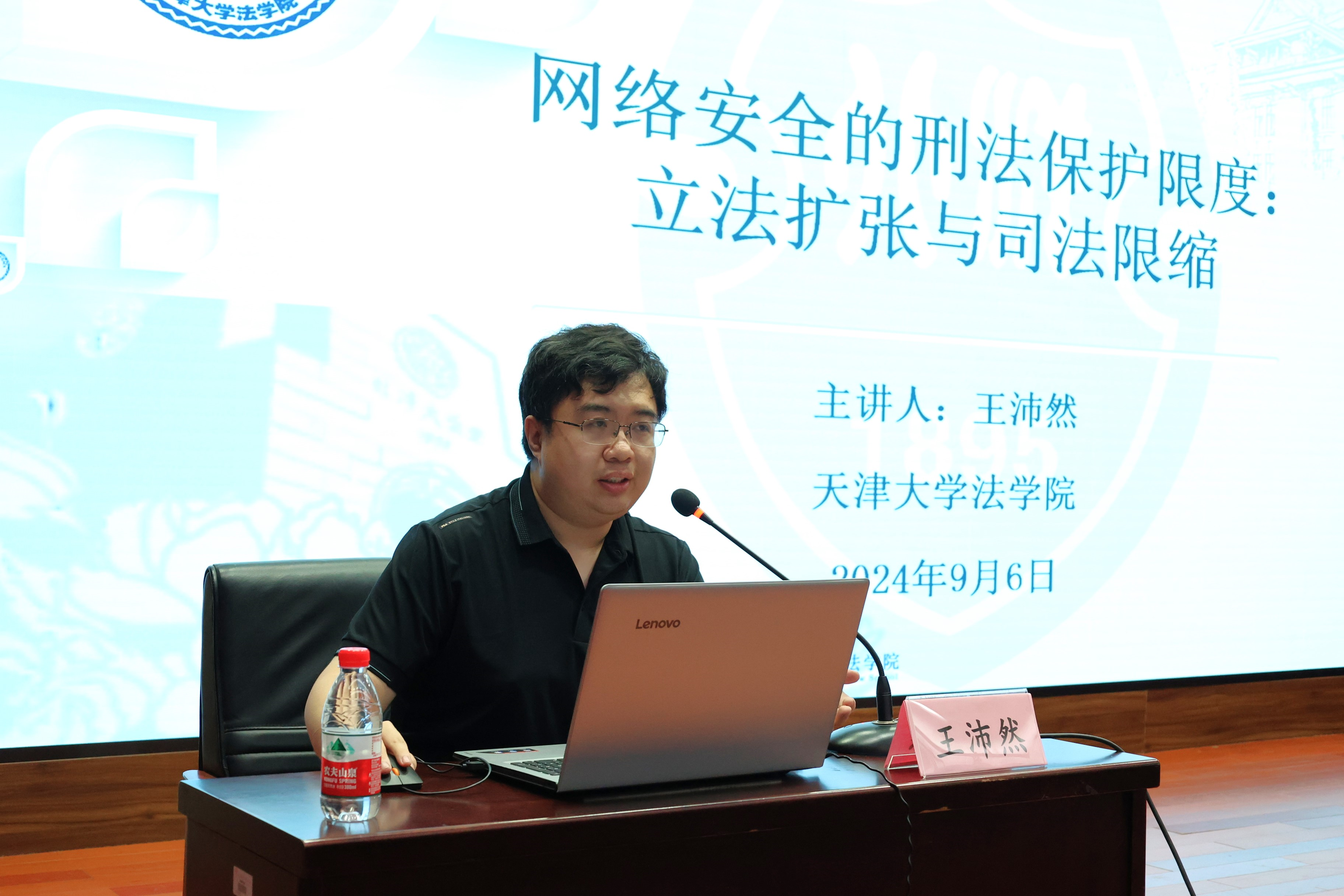 为落实2024年国家网络安全宣传周相关安排和上级工作部署,加强网络安全教育,9月6日下午,学院网信办邀请天津大学法学院王沛然博士,在弘毅楼报告厅举办了网络安全专题讲座——“网络安全的刑法保护限度:立法扩张与司法限缩”。学院师生代表近200人参加讲座。讲座由网信办主任支玉成主持。