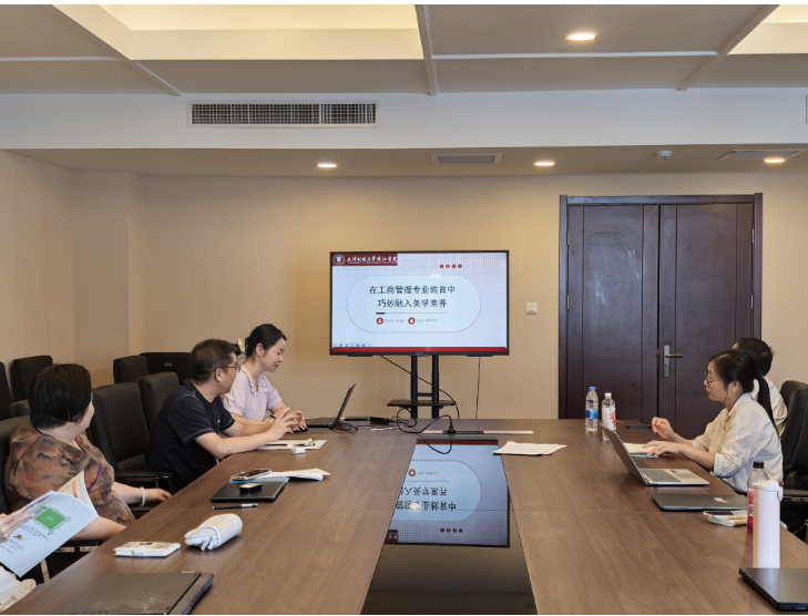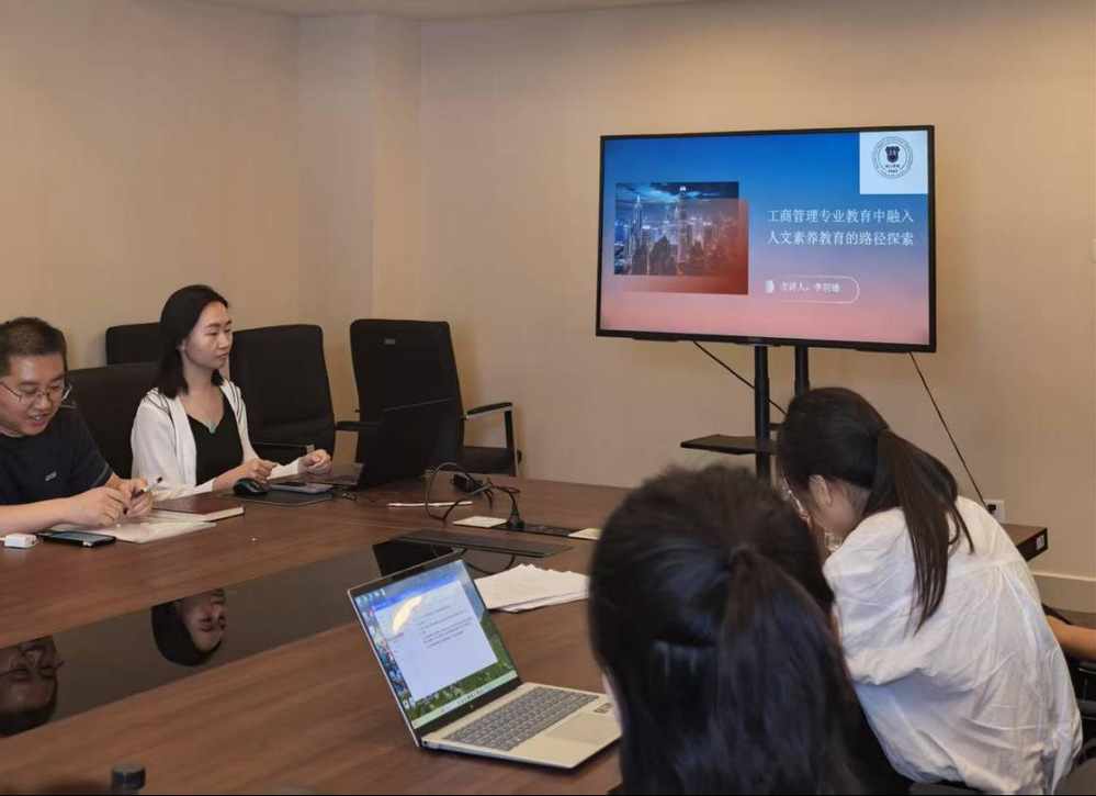 6月11日下午,安轶龙名师工作室在中和楼C412举办主题为“新商科教育融入数智、人文、美学素养培育”的经验分享与交流会。会议聚焦新商科教育中数智、人文、美学素养培育的融入、融合与融通问题,探索三大素养培育融入商科专业教育教学和人才培养的实践路径。管理系张欢、李玥璁、李逢源三位教师围绕会议主题分别进行经验分享,工作室成员、管理系部分教师参会交流研讨。