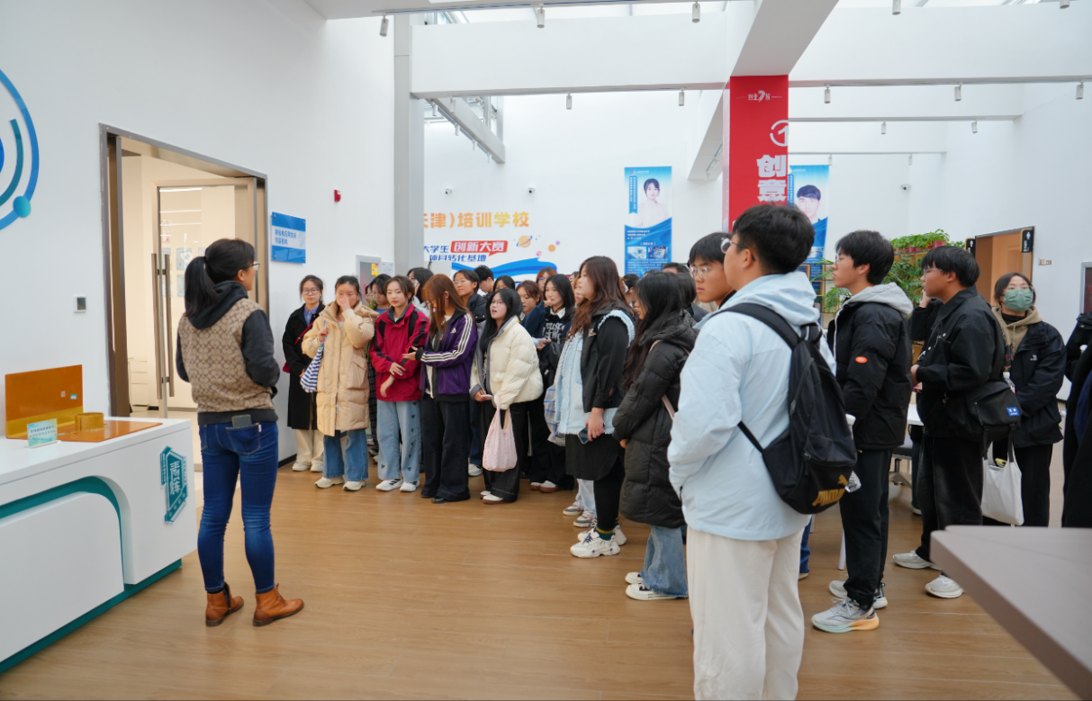 本次活动专门面向大一新生设置,旨在通过“项目分享+互动问答+实景研学”的多元形式,为青年学子搭建实战交流平台,助力创新种子生根发芽。共有三个优秀创新创业团队受邀在沙龙活动中进行经验分享。“津启财智”项目负责人立足金融专业视角,将科技金融与数字金融的核心逻辑拆解为易懂的投资语言;“景泰蓝传承模式探究”以人工智能赋能非遗技艺,首创双非遗融合路径;“便携电子压花器”3D 打印轻量化外壳,内部集成微型烘干与主动通风系统,显著提升压花效率。随后进行了互动交流环节,新生纷纷就自己关心的创新创业问题进行交流。学生工作部创业指导中心主任邵阳,行知众创空间指导老师孙怡和项目团队负责人针对新生提出的“创业项目选题方向”“校园创业资源获取”“专业与创业如何结合”等核心问题,结合自身教学经验与行业案例,进行细致解答,为新生梳理创新创业入门思路,消除实践顾虑。最后,学子们在天开园众创空间讲解老师的带领下实地探访了天开高教科创园,与部分创业团队进行互动交流,近距离触摸前沿科技发展脉搏,感受园区浓厚的创新生态氛围。