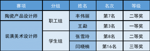 近日,2025年“海河工匠杯”技能大赛——第五届全国工业设计职业技能大赛天津选拔赛获奖名单正式公示。艺术学院王勐老师在装潢美术设计师赛项职工组中荣获一等奖,丰伟丽老师在陶瓷产品设计师赛项职工组中荣获二等奖;张雪玲同学荣获装潢美术设计师赛项学生组二等奖、闫晓楠同学荣获三等奖,成绩斐然。王勐老师将与其他获一等奖选手组成团队代表天津市备战第五届全国工业设计职业技能大赛。
