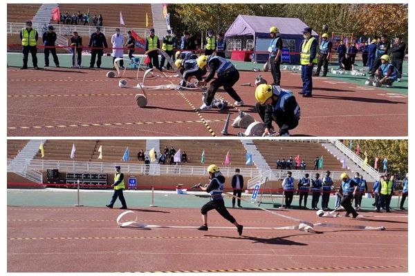 本次竞赛设一人两盘水带连接、更换水带操、空气呼吸器组装佩戴操、搬运重物接力操和移车器定点移车、消防车出水打靶六个项目。比赛过程中,我院参赛选手以饱满的热情和昂扬的斗志,全身心投入到比赛之中,动作准确而迅速,彰显了奋勇争先的珠江精神。经过激烈角逐,我院代表队获得了团体项目一等奖和单人水带连接第四名、第五名和第八名的好成绩,全面展示了我院微型消防站队伍专业化、实战化的训练成果。