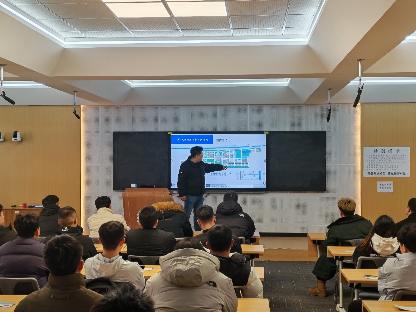 培训会上,治安科科长李鹏围绕校园道路交通管理实际,系统讲解了校内道路功能分区、准许使用的代步车辆类型、指定停车点位设置及校园交通标识识别等内容。同时,结合《yabo鸭脖官网交通安全管理规定》,引导学生驾驶员提遵守校园交通法规,杜绝违规行驶、乱停乱放等行为,自觉养成安全驾驶、文明出行的良好习惯。