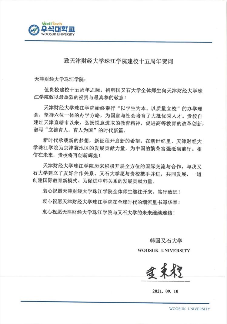 韩国又石大学贺信内容