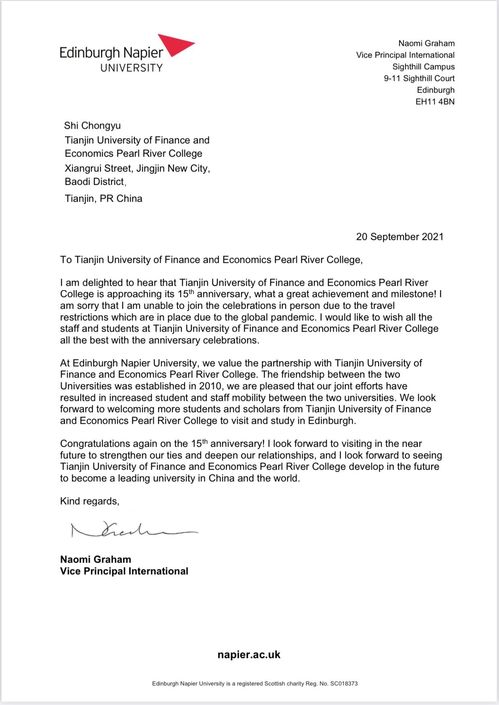 英国爱丁堡龙比亚大学贺信内容