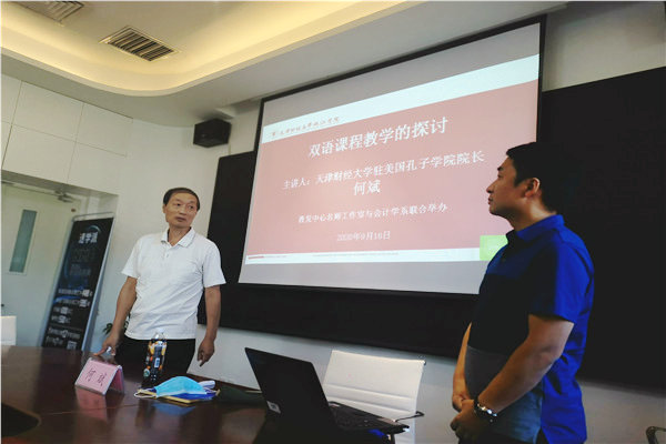 为进一步提高会计学系双语教学水平,2020年9月16日下午,会计学系联合教发中心在中和楼会议室召开双语教学研讨会。会议邀请到yabo鸭脖官网驻美孔子学院何斌院长作为主讲人,教发中心相关老师和会计学系全体教师参加了此次会议,会议由会计学系韩传模主任主持。