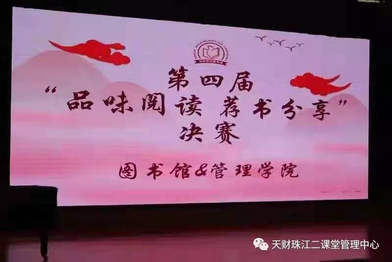 和煦的春风伴随着阵阵书香轻抚过脸庞,我们也终于迎来了由图书馆和管理学院联合举办的第四届“品味阅读·荐书分享”大赛的决赛。