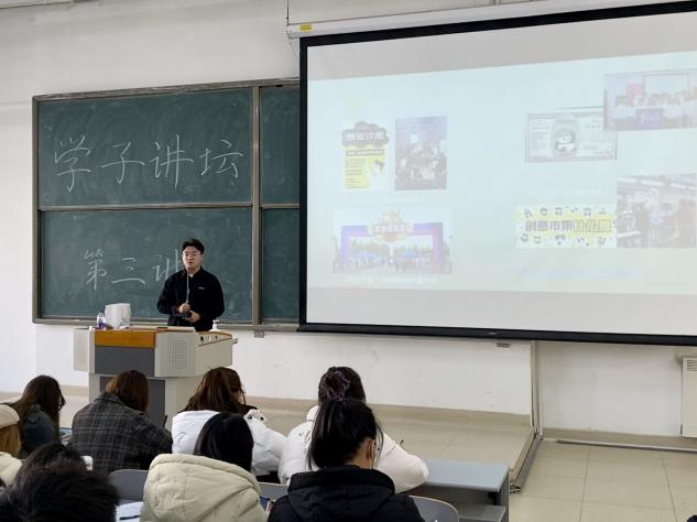 第三位学子讲坛演讲人是由市场营销1815班的罗鹏学长。学长从什么是创业讲起,强调了想法的重要性,也指出了将想法进行实践的必要性。最后得出想法和行动一样重要的结论。学长也向我们展示了校内外各种大学生的创业项目并鼓励我们勇敢说出自己关于创业的想法。他积极投入国家建设,参与扶贫计划,为我们树立了一个优秀的榜样,使我们更加深入的了解了创业的过程,激发了我们对自身创业的向往。