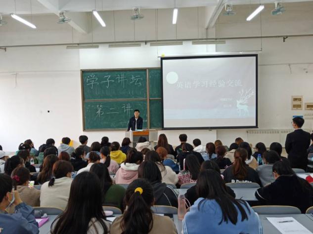 第二位学子讲坛演讲人是来自物联1702班的范江涛学长,他给我们分享了关于“成绩/GPA”“英语学习与备考”两个方面的内容。范江涛学长说道:“大学的时间规划极为重要,大二大三就要有自己明确的目标了,大一新生也不要觉得毕业还早,因为时间不等人......”同时,他还给大家提出了许多建议。欢乐的时光总是过得飞快,短短一节课的时间,范江涛学长为我们介绍了简洁实用的学习方法,同时也为学弟学妹们提供了一个很好的答疑解惑的机会。