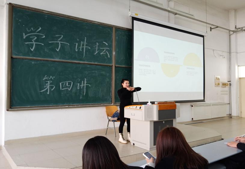 第一位学子讲坛演讲人是经验丰富的郝盺宇学姐,由她前来讲述自己的实习经历和制作简历的心得。她在校参加、主持多个校内实践活动,组织领导能力强,丰富同学校内生活。拥有丰富的相关经验。她为我们详细的讲解了简历的制作内容以及相关注意事项,并以自己走过来的大学生活经验告诉我们:要充分利用大学学习生活,规划自己未来,确定目标,才能在简历上书写出属于自己的辉煌成就!