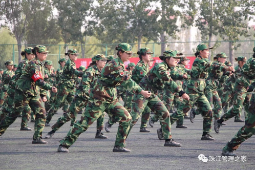 军体拳方队:军体拳是由拳打、脚踢、摔打、夺刀,夺枪等格斗动作组合而成的一种拳术,他们步伐矫健,目光凌厉,斗志昂扬,充分彰显了珠江学子能打胜仗、作风优良的坚定信念和坚强实力。