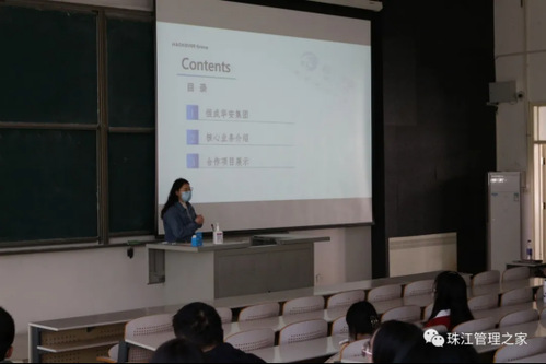 北京华科诚信科技股分有限公司宣讲人向学生介绍了公司的基本信息、发展历程、获得奖项、相关产品以及公司经营范围等。