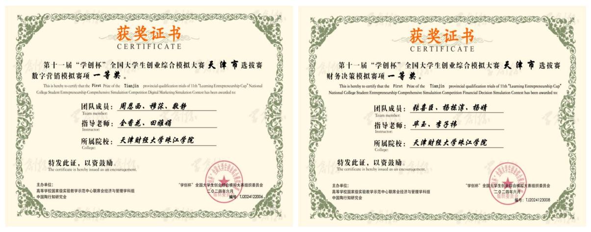 近日,第十一届“学创杯”全国大学生创业综合模拟大赛天津市选拔赛圆满落幕。学院13支参赛队伍在大赛中的数字营销模拟赛项、创业综合模拟赛项以及财务决策模拟赛项三条赛道中喜获佳绩,其中,2支队伍获市级一等奖、9支队伍获市级二等奖、2支队伍获市级三等奖,均获得参加全国半决赛的资格。