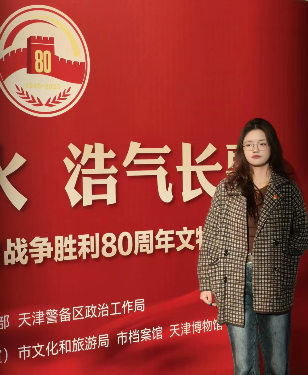 近日走进天津博物馆,参观纪念抗日战争胜利80周年文物展,心灵受到强烈震撼与洗礼。一件件承载着烽火岁月的文物,无声诉说着那段山河破碎、浴血抗争的历史。作为新时代青年,我们当铭记历史、缅怀先烈,将爱国情怀转化为奋进力量,以担当守护和平,用实干书写民族复兴的崭新篇章。