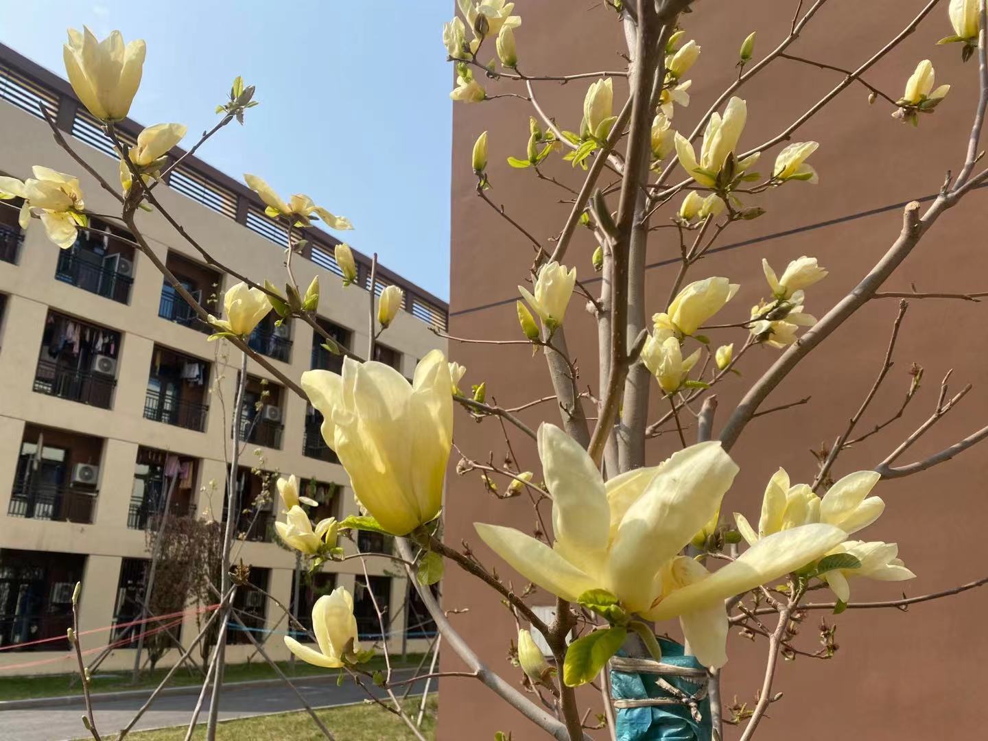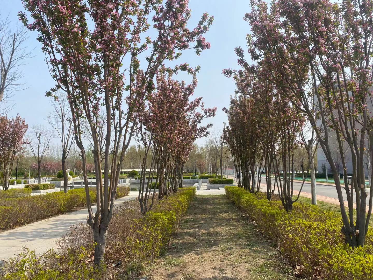 现校园种有法桐、速生杨、毛白杨、金丝柳、馒头柳、垂杨柳、国槐、金叶槐、龙爪槐、合欢、榆叶梅、油松、玉兰、西府海棠、碧桃、枣树、杏树、梨树、桃树等近30余种树木,近2200余株。