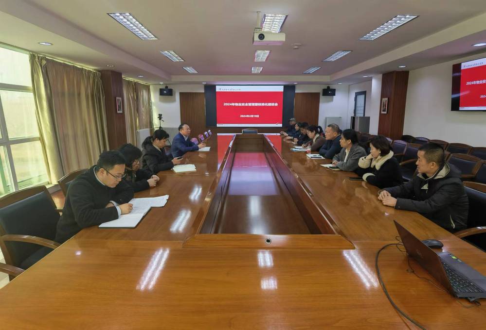 2024年2月19日下午, 后勤基建部组织召开2024年度物业安全管理暨标准化建设工作会。学院副院长李金山主持会议,后勤基建部、康景物业天津公司负责人以及相关管理人员参加会议。