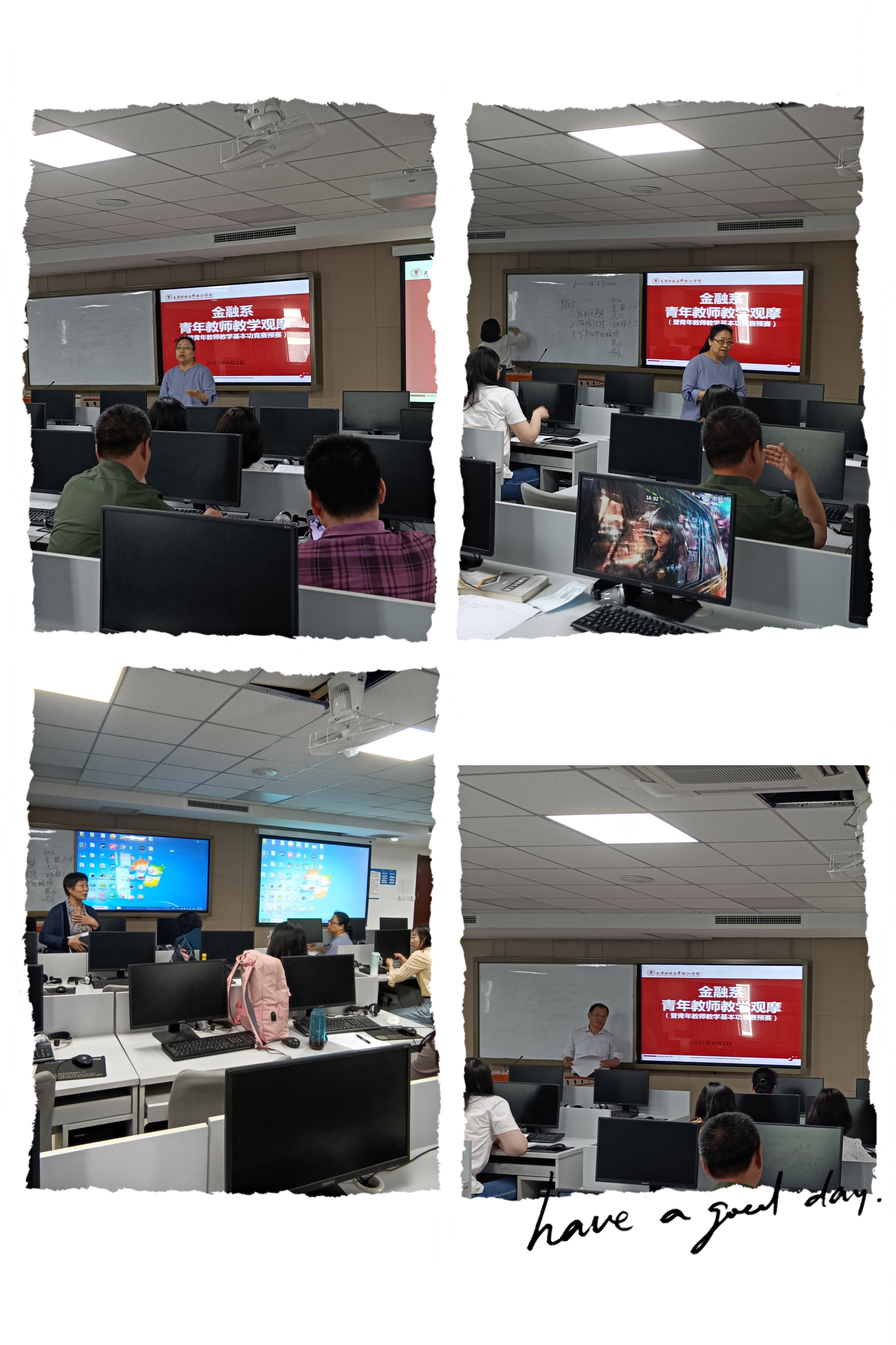 2021年6月2日,金融系举办了青年教师教学观摩活动暨青年教师教学基本功竞赛预赛活动,邀请刘忠燕和姚莉教授担任评委,并对参赛青年教师(王若涵、李林玲、边晓宇、于天奇、郭丽)的授课情况进行了点评,对提高青年教师教学水平发挥了促进作用。青年教师们主要针对基金管理、证券投资、外汇交易模拟、期货交易等课程内容进行了说课和模拟授课,获得了大家的一致好评。通过本次教师教学竞赛,学院对青年教师的教学能力有了更清楚的认知,为今后更好地提升青年教师的教学能力打下了坚实的基础。