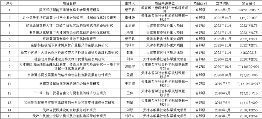 1.主持项目91 项,其中省部级项目 15 项(天津市哲学社会科学规划课题7 项) 、局级项目 15 项、横向课题 3 项、调研类课题 6 项;