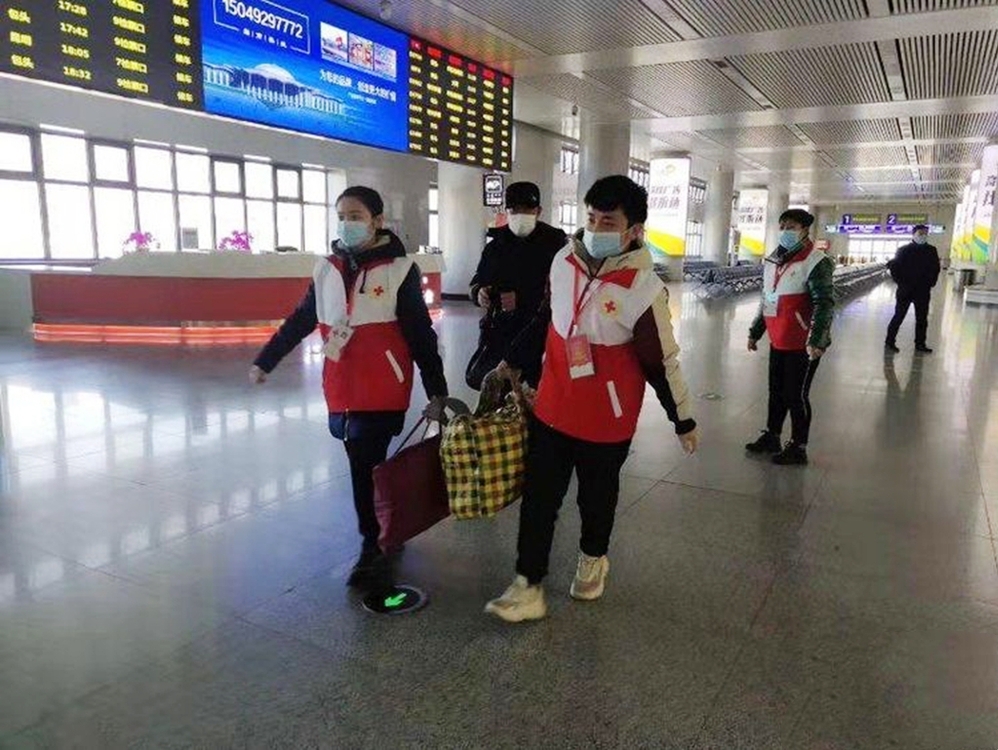 红十字志愿者用行动展现了投身新时代文明实践的红十字志愿者风采,我们始终秉持着“人道”、“博爱”、“奉献”的红十字精神,用热情、真诚的服务温暖新春出行路。