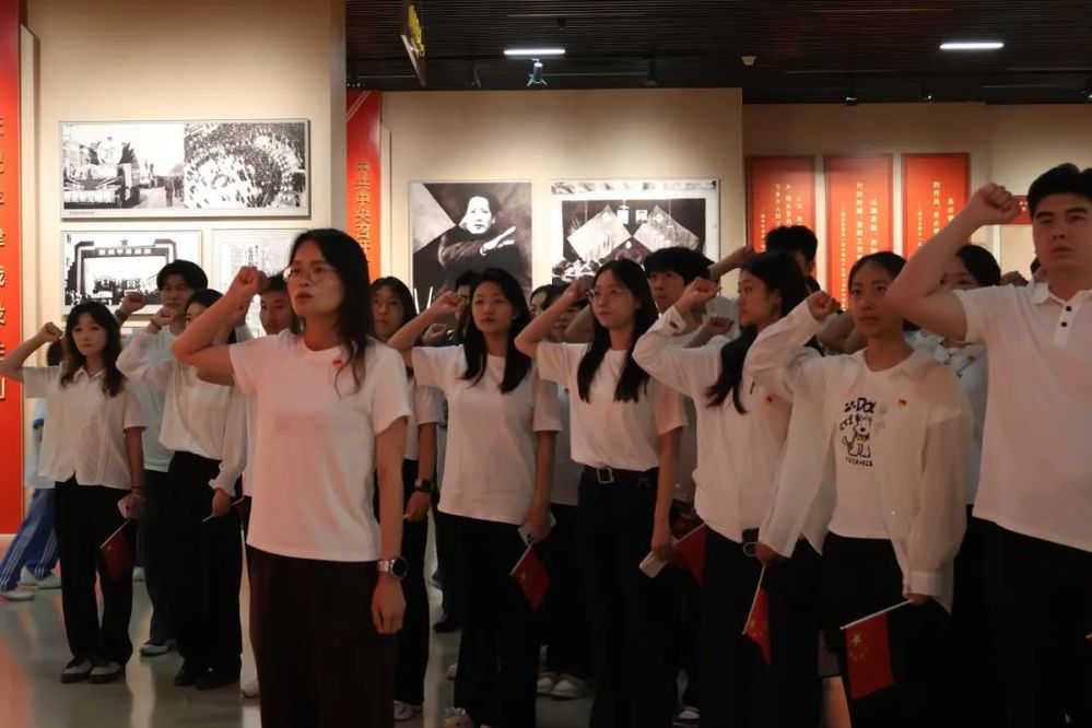 参观结束后,秦燕老师带领各支部预备党员在平津战役纪念馆中的党旗前重温入党誓词。“我志愿加入中国共产党……随时准备为党和人民牺牲一切,永不叛党。”铿锵有力的誓言在展厅上空回荡,表达了党员们对党的忠诚和为共产主义事业奋斗终身的坚定决心。立志传承革命精神,努力学习,为实现中华民族伟大复兴贡献力量。