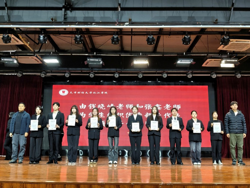 钱晓峰老师与张鑫老师共同为优秀部长代表颁发证书合影留念,高度肯定其在统筹协调、组织管理等工作中展现的担当精神与出色能力。贾稚惠老师与周晓睿老师随后为优秀干事代表颁发证书并合影,表彰他们在日常工作中所秉持的勤恳务实、积极投入的实干精神。