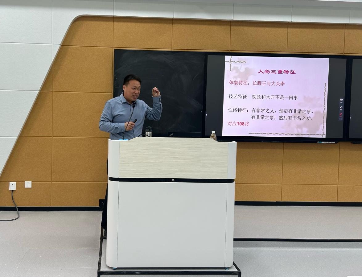 讲座中,周宝东教授紧扣人文素养培育核心,以经典文本细读为核心路径,围绕“人的三重特征”“物的三种属性”及“人物的出场方式”三大维度,抽丝剥茧般解析经典文本的深层运行逻辑。他将文学理论与人文思考相融合,既引导师生感受经典作品中的人文内涵,又传授实用的读写方法,为师生打通“阅读感知—理论理解—写作实践”的链路。