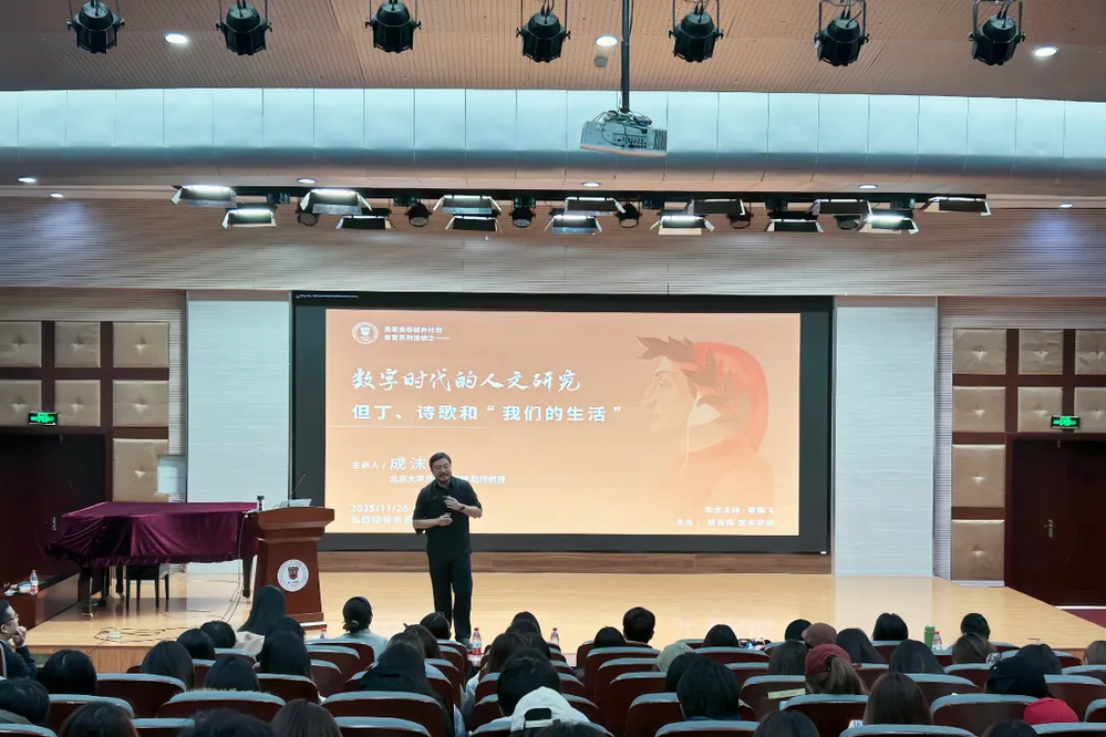 11月26日下午,学院“美学素养提升计划”美育系列活动—《数字时代的人文研究:但丁、诗歌和“我们的生活”》讲座在弘毅楼音乐系演奏厅举办。讲座特邀北京大学外国语学院助理教授成沫担任主讲,艺术学院副院长曹鹏飞担任学术主持。学院图书馆和艺术学院师生代表百余人参加。