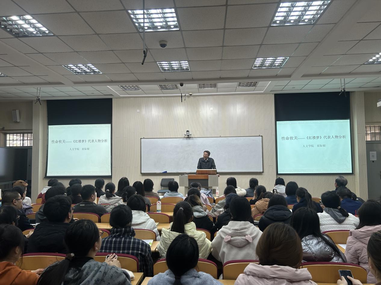 为提升师生文学素养,深化对中国古典文学的理解,11月19日,人文学院院长崔际银教授以“《红楼梦》代表人物分析”为题,为学院师生带来了一场精彩的文学盛宴。讲座由教务部部长毛亚琼主持。