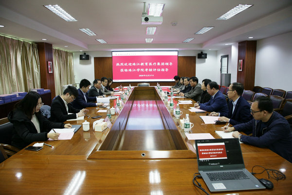 2020年12月17日,珠江教育医疗集团高级顾问罗伟其、珠江学院董事长郑晨光、珠江教育医疗集团教育发展管理中心副总经理杜展鹏和经理梁晓颖、珠江教育医疗集团审计监察中心总经理杨伟新和经理李康惠一行六人莅临学院考核评估。院领导班子成员参会并汇报2019-2020学年学院各项重点工作开展情况。