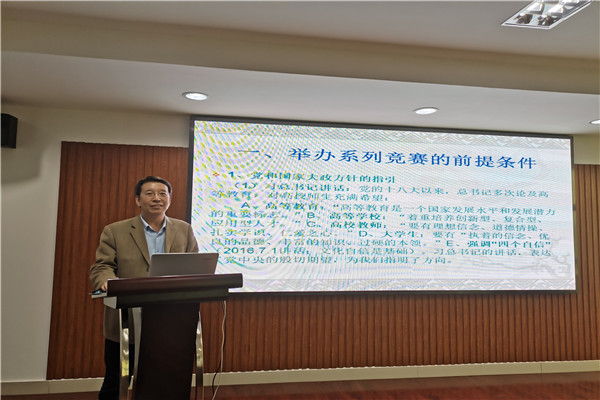 中华优秀传统文化系列竞赛,是由人文学院主办、文化传播系具体承办的校级竞赛活动;自2018年开始,每年举办两季(上半年、下半年)四个场次的赛事。崔教授从“举办系列竞赛的前提条件”、“举办系列竞赛的具体过程”、“举办竞赛的初步成效”三个方面,详细介绍了“传统文化系列竞赛”的有关情况。同时,还分别以“具备牢固基础、明确目标定位、严密组织实施、坚持守正出新、获取支持扶助”为题,与大家分享了主持举办此项系列竞赛活动的体会。