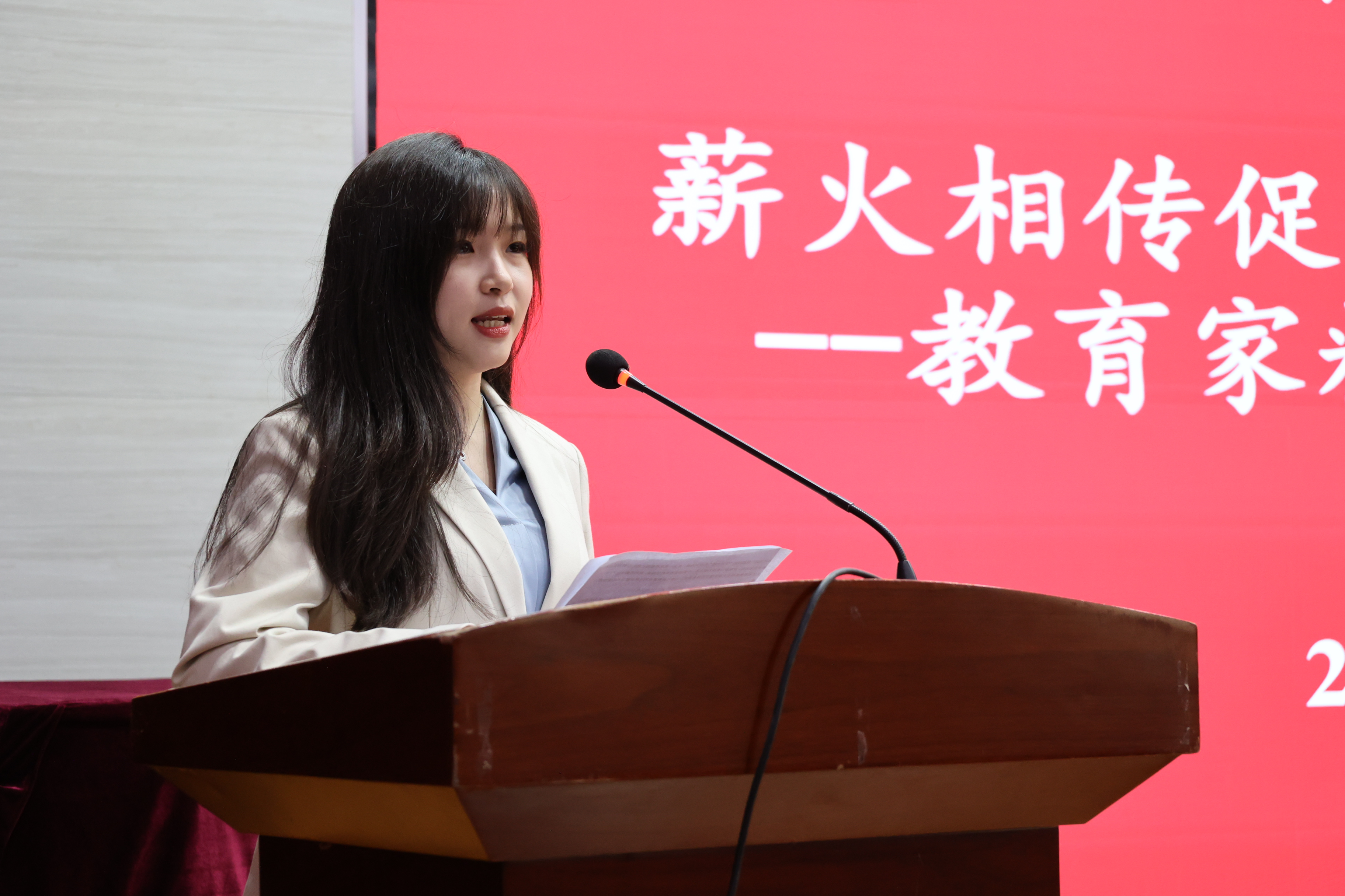 经济学院新入职教师万肖姗畅谈自己对教育家精神的认识,她认为每位教师都应在奋斗中磨炼自我、坚定信心,将“小我”融入教育这个伟大的事业之中。这不仅是个人的价值实现,也是为国家培育接班人的使命。