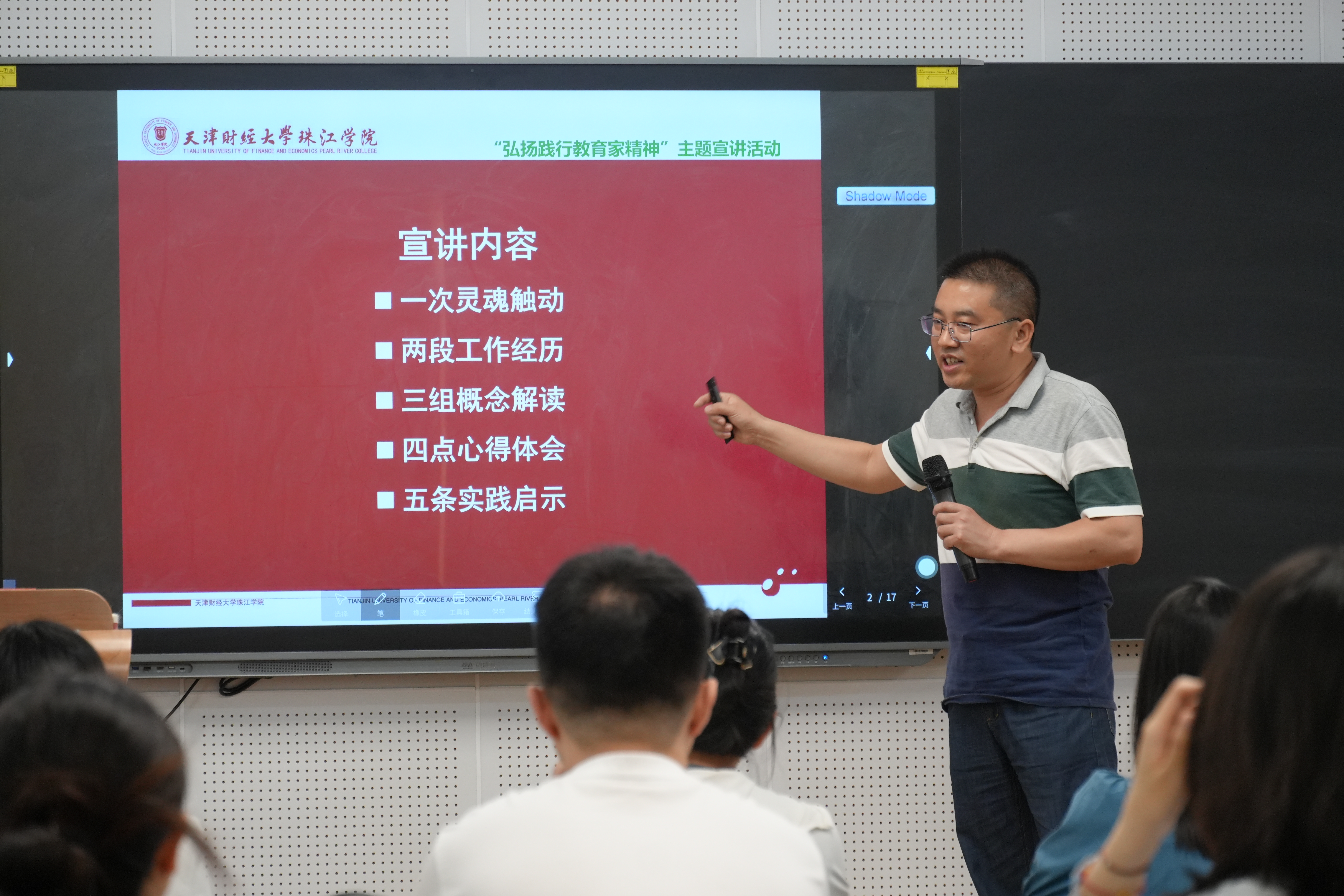 本次宣讲活动邀请管理学院管理系副教授、企业管理教研室主任余耀东和经济学院金融系副教授赵星担任主讲人,宣讲会上,两位主讲人登台讲述生动鲜活的教育故事,用实际行动诠释了教育家精神的深刻内涵。