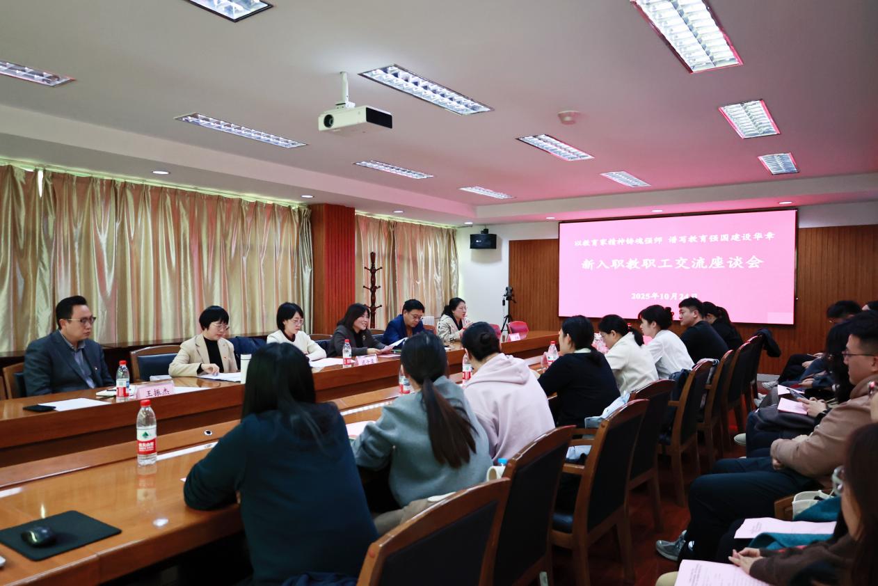 在“教育家精神铸魂强师,谱写教育强国建设华章——新入职教师交流座谈会”上,首先,全体与会教师观看了纪录片《国家记忆——教育家精神:乐教爱生 甘于奉献》,旨在激励广大教师立德修身、敬业立学,做新时代的“大先生”。随后,优秀教师代表与全体新入职教师进行交流座谈。优秀教师代表经济学院金融系副主任、副教授王丽娜,管理学院副院长、教授安轶龙,数据工程学院副院长、教授田孟,数据工程学院院长助理、教授迟子孟,政治理论课部副部长、教授谢赛银分别就如何理解教育家精神及结合工作岗位,如何践行教育家精神进行了发言。新入职教师代表会计学院尹慧敏、李善花也结合本次新入职教职工培训及对教育家精神的学习感悟进行了发言。最后,大家还就教师关心和思考的问题进行交流。