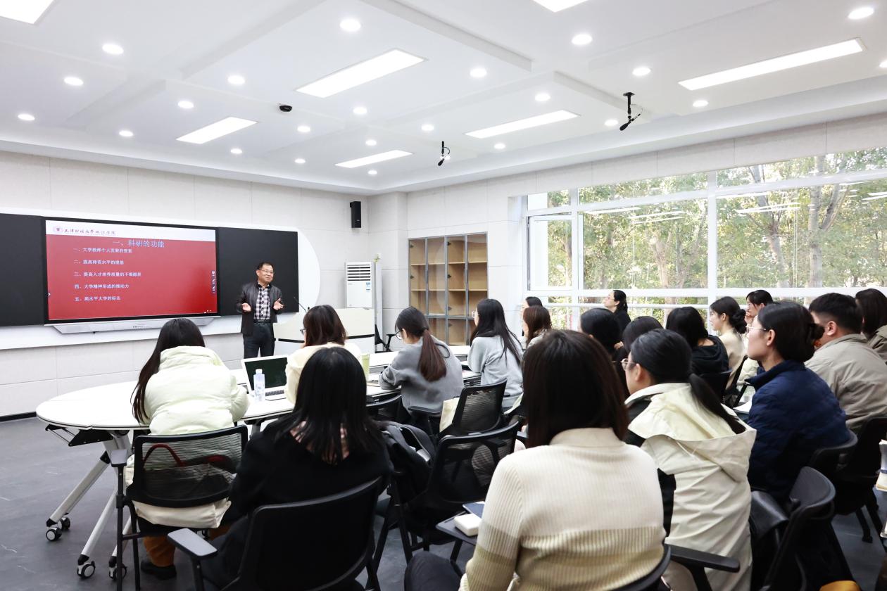 科研管理中心主任刘泽东围绕科研的功能、科研规范、科研管理等方面助力新入职教职工深入了解学院科研制度体系,更全面地掌握科研业务基本规范,增强科研诚信意识,引导他们树立正确的科研价值观。