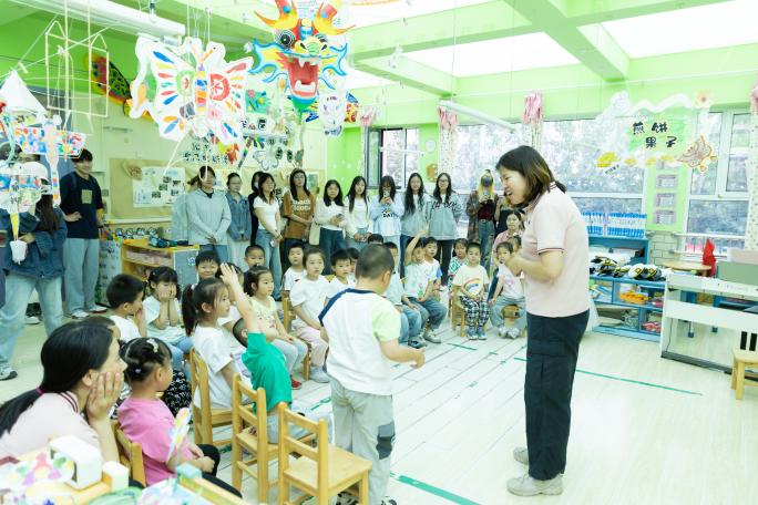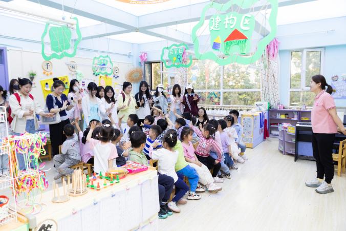 活动当日,2023 级学生在校内见习教师与幼儿园教师的共同指导下,有序开展园所环境创设、班级组织管理、幼儿游戏互动等观摩见习任务。这种沉浸式实践体验,不仅帮助学生直观理解幼儿教育理论,更有效提升了专业认知与职业认同感。