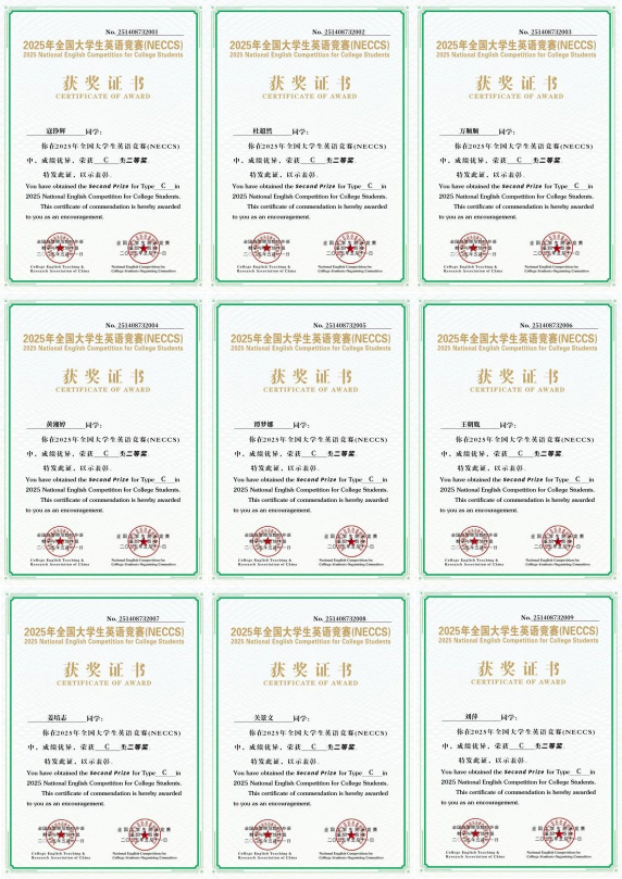 近日,2025年全国大学生英语竞赛决赛在圆满落幕。珠江学子不负众望,凭借扎实的专业功底和出色的赛场发挥,取得了令人瞩目的优异成绩。会计 2202 班彭梦雨首次夺得非英语专业本科组C类特等奖,实现了学院在该项赛事中的历史性突破。同时,学院另有1人荣获一等奖,9人荣获二等奖,16人荣获三等奖,充分展示了学院英语教学的扎实基础和有效性。