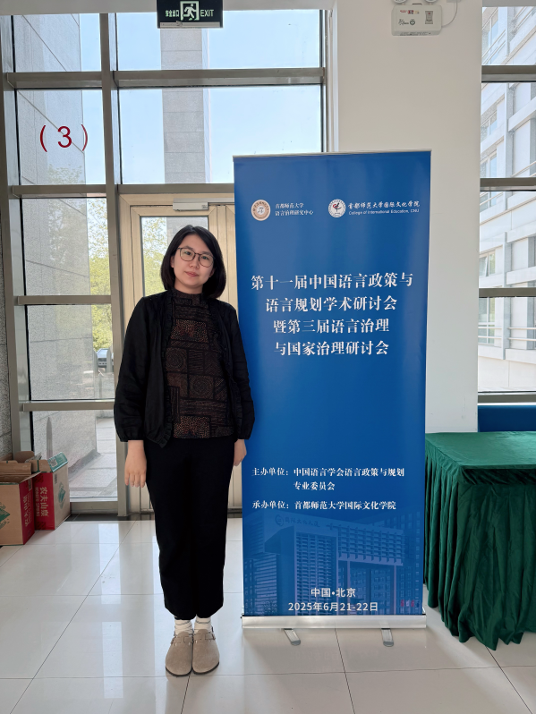 我院汉语国际教育专业教师袁艺铭应邀参加此次会议,并就当前语言政策研究的发展趋势、语言生活、语言治理路径等议题,与来自国内外的专家学者进行了深入交流和探讨。通过专题发言、学术论坛、专家访谈等多种形式,深入了解了国家语言治理体系建设的最新动态、语言政策对教育和社会发展的重要影响,以及人工智能背景下语言资源管理的新挑战与新机遇。