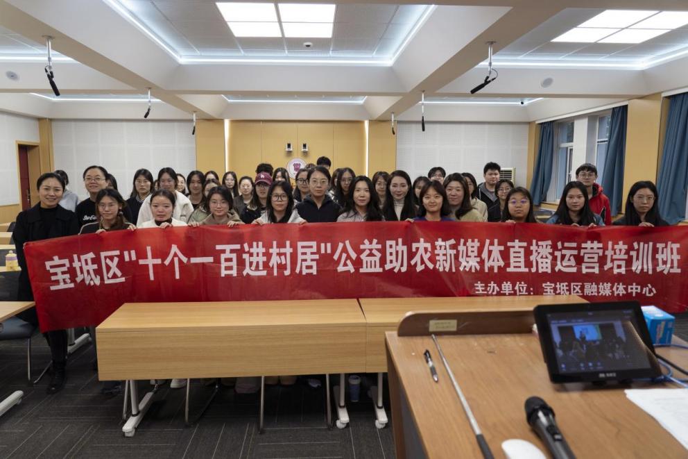 立足于《“互联网+传媒”创意传播》课程教学需要,10月29日下午,由传播学教研室主办的宝坻区融媒体中心公益助农直播分享会在日新206举行。本次分享邀请宝坻融媒公益助农直播团队负责人、出镜主播庞晓晨担任主讲,她通过一线实战经验,展示了融媒体直播在助力农户增收、服务地方发展中发挥的新作用,为师生们带来新媒体赋能乡村振兴的生动一课。