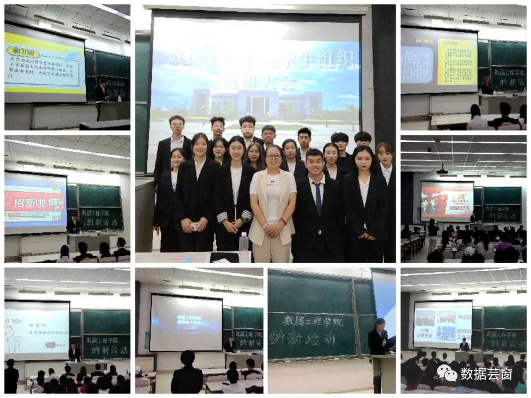 参加本次纳新大会的有数据工程学院团委,学生会宣传部、文艺部、秘书处、体育部、学习部、外联部以及新媒体工作室。较往年相比,今年的纳新大会部门有所增加,这也正是学生成长与发展的体现。