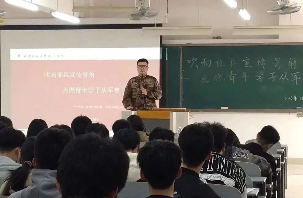 2023年3月29日下午,数据工程学院联合校武装部,在新上善204举办了“吹响征兵号角,点燃青年学子从军梦”主题宣讲会。本次宣讲会面向全体学生展开,由军训指挥官阳涛老师担任主持,并邀请到了就业指导中心的范老师,宝坻区征兵办公室白参谋和李老师做宣传演讲。