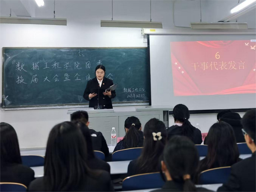 大会在全体成员齐唱《光荣啊,中国共青团》的激昂歌声中圆满落幕,展现了数据工程学院团委成员昂扬向上的精神风貌与坚定决心。此次大会明确了数据工程学院团委的发展方向,凝聚了共识与力量,为未来工作的顺利开展奠定了坚实基础。今后,全体成员将以更加饱满的热情和扎实的行动,共同推动数据工程学院团学事业迈向新台阶。