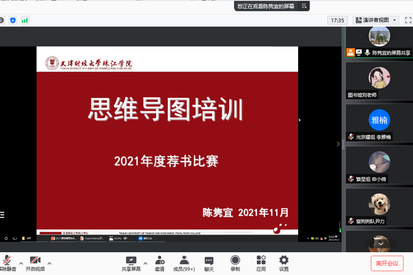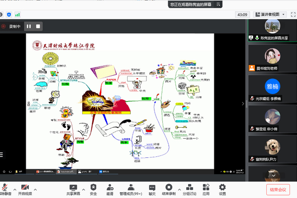 11月3日中午,图书馆为参加“品味阅读 荐书分享”活动的同学举办了“思维导图”培训会,会议以线上方式进行,由图书馆副馆长陈隽宜主讲,共计200余名同学参加了会议。