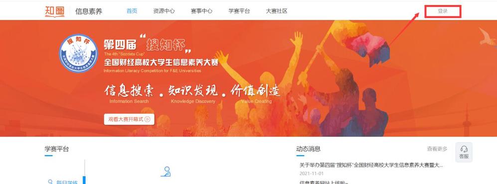 1. 登录网址(http://www.sozdata.com),点击第四届“搜知杯”信息素养大赛。
