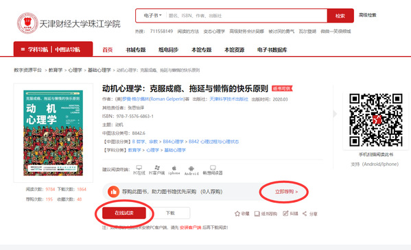 查找到想要的资源后,点击进入图书详情页,如不能全文阅读,可点击“立即荐购”。